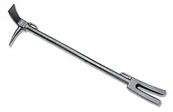 Es gibt auch kombinierte Werkzeuge, die an einem Ende einem Kuhfuß und am anderen Ende einer Brechstange gleichen.