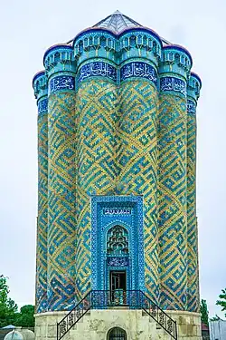 Nahe dem Mausoleum befindet sich ein Tor, an dessen Seiten je ein Minarett errichtet wurde. Beide haben längliche Sockel und einen Dreipass-Deckenabschluss. Der untere Teil der Minarette ist mit türkisfarbenen glasierten Kacheln verziert, die nach oben durch einen breiten Streifen arabischer Schrift abgeschlossen werden. Die Wendeltreppe des südlichen Minaretts beginnt auf Höhe des Erdgeschosses. Hinter dem Tor schloss sich ursprünglich ein Gebäude an, von dessen Dach die Wendeltreppe des nördlichen Minaretts zugänglich war.
