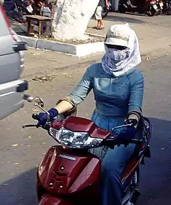 In den Großstädten wird – wie in vielen anderen dichtbevölkerten asiatischen Städten auch – ein Mundschutz getragen oder ein Tuch vor den Mund gebunden, um sich gegen Staub und Abgase zu schützen. Legt eine Frau Wert auf ihr Äußeres, kann es durchaus ein von einer hübschen Häkelborte umrahmtes Seidentuch sein. Die gepflegte Frau trägt zur kurzärmligen Bluse oft leichte helle Handschuhe, die bis über den Ellenbogen reichen, um sich vor Staub und Sonne zu schützen. Ähnlich wie in Europa im Mittelalter gilt helle Haut als vornehm und als Zeichen von Schönheit, sodass Sonnencreme bei vietnamesischen Mädchen reißenden Absatz findet.
