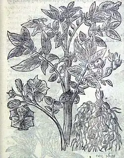 In Italien erhielt die Kartoffel wegen ihrer Ähnlichkeit mit Trüffeln den Namen Tarathopholi, auch Taratouphli. Bereits 1591 erwähnte der deutsche Landgraf Wilhelm IV. (Hessen-Kassel) diese Bezeichnung in seinen Briefen. Um 1800 waren in Deutschland die abgeleiteten Wörter Tartuffeln oder Artoffel üblich.[2] Daraus hat sich durch eine Dissimilation das Wort Kartoffel entwickelt. Dagegen hat das italienische Wort tartufolo an Bedeutung verloren, an seine Stelle ist patata getreten.[4]