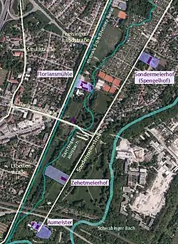 - ↑ a b Geschichte und historische Grunddaten von Schwabing-Freimann, Stadt München ( des vom 14. August 2020 im Internet Archive) Info: Der Archivlink wurde automatisch eingesetzt und noch nicht geprüft. Bitte prüfe Original- und Archivlink gemäß Anleitung und entferne dann diesen Hinweis.