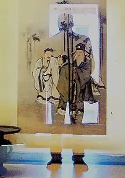 - Stellschirme, Hängerollen, Bücher: 4 Hängerollen von Sesshū, von denen drei ein Trypthychon bilden, ein Paar Stellschirme mit Landschaften von Maruyama Ōkyo, ein Trypthichon von Kanō Tsunenobu, das jetzt zu einem Gemälde vereinigt wurde, ein bemerkenswertes Stellschirm-Paar von Kanō Eitoku und Stellschirme von Soga Shohaku (1730–1781). Weiter sind Bilder zu sehen von Ganku, Ike no Taiga, Tanomura Chikuden und Buson. Weiter gibt es Ukiyo-e, Haiku-Sammlungen, Schriften bekannter Samurai, Materialien verschiedener Künstler und Autoren mit Bezug zu Hagi, insgesamt etwa 300 Stück.[4]