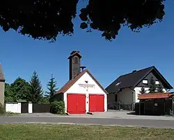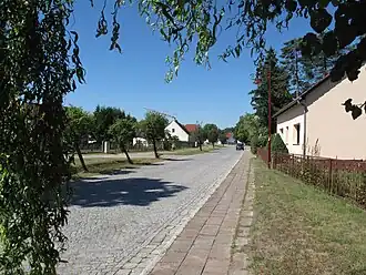 Kummersdorfer Hauptstraße mit Dorfplatz und Feuerwehr -