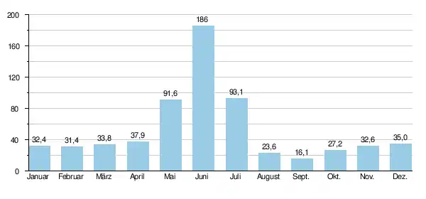 Mittlerer monatlicher Abfluss des Kundus (in m³/s) am Pegel Char Dara (nahe der Stadt Kundus)