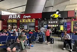 Kungfu (chinesisch 真功夫, Pinyin Zhēn Gōngfu, englisch Real Kungfu), offiziell Guangzhou Real Kungfu Catering Management Co., Ltd. (真功夫全球華人餐飲連鎖 / 真功夫全球华人餐饮连锁), ist eine private Fastfood-Gastronomiekette mit ursprünglichem Sitz in Dongguan in der südchinesischen Provinz Guangdong. Diese eigene Form von „Privatunternehmen“ wird in China Minqi (民企)[Fn 1] genannt.[6] Angeboten werden in der Regel traditionell durch Dampfgaren zubereitete Gerichte der chinesischen Küche mit Reis (fàn)[Fn 2], Fleisch (ròu)[Fn 3], Suppe (tāng)[Fn 4] und Gemüse (shūcài)[Fn 5] als Beilage. Beispielsweise werden Rippchen (Páigǔ)[Fn 6] gerne in Gerichte als Fleischbeilage genommen. Die Speisekarten der Kette sind alle zweisprachig.[7] Seit Beginn des Franchising hat die Restaurantkette ein Stencil als Firmenlogo, das dem verstorbenen Kampfkünstler und Schauspieler Bruce Lee aus Guangdong sehr ähnlich ist.[3][8][9]