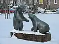 Hans Martin Ruwoldt | Füchsin mit Jungen Stein-Skulptur, die eine Füchsin mit ihren Welpen darstellt. |