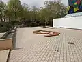 Die in das Pflaster eingelassene Stahlskulptur ist dem Physiker Stephen Hawking und seiner Theorie des „unsichtbaren schwarzen Lochs“ gewidmet. | |