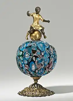 Die historische Glassammlung umfasst etwa 2.700 Objekte und bietet einen repräsentativen Einblick in die Entwicklung der europäischen Glasherstellung seit dem Spätmittelalter.[35][36] Zugleich enthält sie kostbare, teils ältere Einzelstücke wie das Coburger Hedwigsglas (11. Jahrhundert) aus dem Besitz Martin Luthers. Den Schwerpunkt der Sammlung bilden Werke des 15. bis 17. Jahrhunderts aus Venedig sowie Gläser à la façon de Venise, darunter eine technisch einmalige Millefiorikugel mit Mohrenfigur als Bekrönung (16. Jahrhundert).[37] Ergänzt wird dieser Bestand vor allem um Gläser des Barock, darunter Service-Vorräte und Prunkstücke der herzoglichen Hofhaltung, deutsches Emailglas, Rubinglas und eine Abteilung mit Schnittdekor des 17. und 18. Jahrhunderts. Wichtige Objekte des 19. Jahrhunderts sowie Gläser des Jugendstils und des Art déco runden die Auswahl ab. Die in den 1960er Jahren begründete Sammlung moderner und zeitgenössischer Glaskunst wird heute im Europäischen Museum für Modernes Glas in Rödental präsentiert.