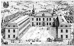 Entsprechend dem vorherrschenden Zeitgeschmack wurde entlang der Südseite der Hofanlage, etwa im Bereich des heutigen Kaiserplatzes, ein prächtig gestalteter Barockgarten angelegt, der im Rahmen der Umgestaltung der Stadt zu Beginn des 20. Jahrhunderts einem neuen Stadtkern mit vorwiegender Historismus-Architektur weichen musste.