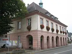 - Davor befindet sich das alte Rathaus aus dem 18. Jahrhundert.