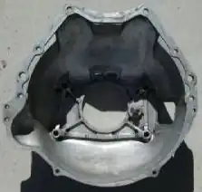 Kupplungsglocke, wie sie in Buick, Oldsmobile und Pontiac verbaut wird, Sicht aus Motorseite mit Ausbuchtung für Anlasserritzel