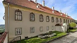 Der lang gestreckte, zweigeschoßige Barockbau steht im Westen der Wallfahrtskirche. Er wurde 1708 errichtet, 1716 aufgestockt und 1766 renoviert. Die 15-achsige Front hat zwei Portalvorhallen mit Rundgiebeln und Rundbogenportalen. Im Erdgeschoß haben die Fenster schmiedeeiserne Steckgitter, im Obergeschoß Fensterkörbe, um 1730. Das Erdgeschoß hat Stichkappengewölbe, das Obergeschoß flache Decken.