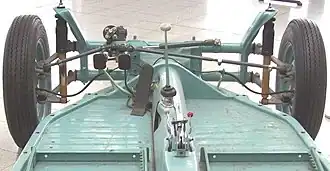Jedes Vorderrad ist mit zwei gleich langen Kurbellenkern aufgehängt, die den Radträger mit dem Fahrgestell verbinden. Da die Abstände der Lagerstellen am Fahrgestell und der am Radträger gleich groß sind, ist es ein Parallelkurbelgetriebe. Der Radträger ist deshalb beim Einfedern des Rades immer parallel zur Verbindungslinie der beiden Lager am Fahrzeugrahmen, und Spurweite, Radsturz und Nachlauf bleiben gleich. Lediglich der Radstand verändert sich geringfügig.