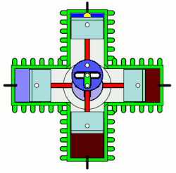 - Kurbelschlaufe (Scotch-Yoke) statt Pleuel zur Umwandlung der Translationsbewegung in eine Rotationsbewegung:
