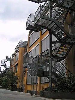 Das Nebengebäude in der Luisenstraße im Stadtteil Bergheim mit Unterrichtsräumen wurde Ende des 19. Jahrhunderts im Stil des Klassizismus erbaut und saniert.