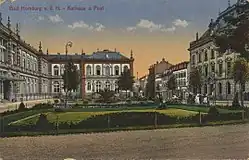 Nach dem Krieg entschied man sich gegen den Wiederaufbau des alten Kurhauses in seiner alten Form. Der Neubau wurde durch Hermann Heidtmann finanziert, der 1949 Konzessionär der Spielbank wurde. Am 2. September 1950 wurde der Grundstein für das neue Kurhaus gelegt, das nach den Plänen der Architekten Bartels, Schweitzer und Hufnagel errichtet wurde. Schwerpunkt war nun die Nutzung als Tagungs- und Kongressgebäude. Auf dem Grundstück wurde gleichzeitig das Hotel „Prinz von Homburg“ als Tagungshotel gebaut. Das Kurtheater erhielt ein gesondertes Gebäude mit 850 Plätzen am Schwedenpfad. Nach Fertigstellung des Kurhauses, zog die Kreissparkasse des Obertaunuskreises vom alten Landratsamt in das Nebengebäude des Kurhauses und eröffnete dort am 18. April 1953 ihre Hauptstelle.[1]