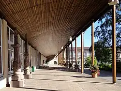 In der Wandelhalle stehen die Originale zu Brunnenfiguren in Freudenstadt. Auf den zugehörigen Brunnen in Freudenstadt befinden sich nur Kopien dieser Originalfiguren.