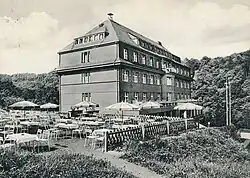 Die Nebensaison lieferte regelmäßig unrentable Ergebnisse. Aus diesem Grund wandelte das DRK das Kurhaus ab 1960 in ein geschlossenes Erholungsheim um, das jährlich in etwa 16 Etappen von durchschnittlich 95 weiblichen Kurgästen von verschiedenen Sozialversicherungsträgern belegt war. Die Anwendung der Kaltwasserkuren erfolgte nach der Ohlstädter-Methode.[16] Das DRK errichtete dazu Wassertretbecken, eine Gymnastikhalle und ein Badehaus. In den 1960er Jahren baute man in funktionalisierter Form an der südlichen Seite einen Turm mit Aufzug und westlich eine Personalwohnung an. Nach 1972 erfolgten umfangreichere Sanierungen und Erweiterungen. An der Rückseite wurde eine moderne Bäderabteilung mit Schwimmbad, Sauna und Einrichtungen für Kuranwendungen errichtet. Jedes Gästezimmer erhielt ein eigenes Bad mit WC. Das Gelände wurde südlich durch eine zweite Zufahrt erschlossen, da die Brücke für große LKWs zu schmal war.