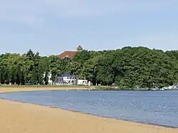 Zur Förderung des Fremdenverkehrs gründete sich 1909 die Kurhaus GmbH, die Zippendorf zu einem Luftkurort entwickeln wollte und neben einem Strandhotel auch bis 1910 das nach eigener Aussage gemeinnützige Kurhaus mit 63 Betten, einer geschlossenen Veranda sowie Damen-, Gesellschafts- und Lesezimmern nach Plänen von Paul Korff[2] errichten ließ. Zu jener Zeit gab es Streitigkeiten mit der Stadt, die sich in nicht ausreichender Weise um die Entwicklung und den Unterhalt des Umfelds und der Infrastruktur kümmerte. So wurden Spazierwege nicht gepflegt, der Strand wurde von Anwohnern zur Lagerung von Unrat genutzt, und drei zum Anlegen von Dampfschiffen angeschüttete Erdwälle erschwerten den Wasseraustausch in der Bucht des Schweriner Sees mit Auswirkungen auf die Wasserqualität.