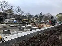Aufgrund der hohen Heizungskosten und veralteter technischer Ausstattung wird die Schule seit 2020 saniert. Über die Sanierung wurde am 10. April 2020 im Gemeinderat diskutiert und grundlegende Dinge geklärt. Um den Schulbetrieb aufrechtzuerhalten, ist die Sanierung in 3 Bauabschnitte gegliedert. Der erste Bauabschnitt sollte zunächst bis Ende des Jahres 2020 dauern, Phase 2 sollte bis Ende 2021, die letzte Phase bis Frühjahr 2022 beendet sein.[12] Dieser Zeitplan musste mehrfach angepasst werden, unter anderem aufgrund der Corona-Pandemie und des Ukraine-Konflikts. Die Kosten für die Sanierung sollen maximal 21,5 Mio. € betragen, von denen 6,7 Mio. € als Bundeszuschuss dazu kommen.[13] Auf dem Lehrerparkplatz sind Container als Klassenzimmer Ersatz aufgestellt, hierbei bilden ca.[14] 4 Containerelemente ein Klassenzimmer. Zwischen Dezember 2019 und Januar 2020 sollte die erste Schülergruppe umziehen, was im Frühjahr 2020 erfolgte. Das Hauptgebäude ist dreistöckig, besteht aus 114 Modulen und besitzt eine Grundfläche von ca. 615 Quadratmetern. Das Nebengebäude ist dagegen einstöckig und besteht aus nur 19 Containern (288 Quadratmeter). Der gesamte IT- und Serverbereich soll in der Schule deutlich verbessert werden.[15] Die Leitung obliegt dem Architektenbüro Dierks Blume Nasedy (DBN) aus Darmstadt.