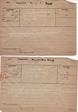 Hochzeitsglückwünsche von Bundeskanzler Konrad Adenauer und dem CDU-Bundestagsabgeordneten Gerhard Schröder (April 1950)