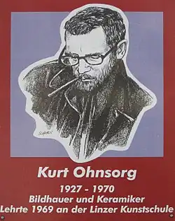 - ↑ siehe auch: Kurt Ohnsorg – Keramik, Katalog zur Ausstellung in der Wiener Zentralsparkasse 1966, Einleitung von Otto Breicha, Wien 1966: Zentralsparkasse der Gemeinde Wien, vgl. Rudolf Altmüller und Friedrich Fuhrich: Bibliographie zur oberösterreichischen Geschichte. Das Schrifttum des Jahres 1967. In: Jahrbuch des Oberösterreichischen Musealvereines. Linz 1968, S. 217 (ooegeschichte.at [PDF]).