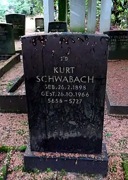 - Entschädigungsbehörde Berlin, Landesverwaltungsamt für Bürger- und Ordnungsangelegenheiten, Abt. 1,: enthält: Entschädigungsakten Kurt Schwabach (Aktenzeichen 25.155, 315.180) [1].