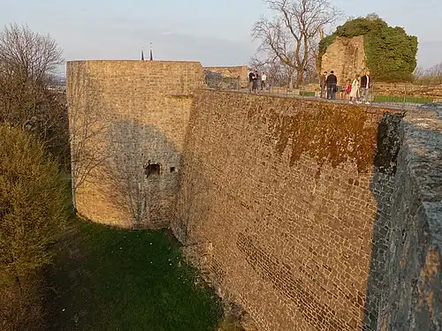 - ↑ Bertaux, Lepointe: Dictionnaire Française Allemand. (o. J., um 1930/35), s. v. courtine; Duden (Ausgabe 1908), s. v. Kurtine (in französischen Büchern über Festungen oder Festungsbau findet sich an Stelle von „courtine“ manchmal als Wortspiel oder zur Abwechslung auch das (neuere) französische Wort für Vorhang „rideau“).
