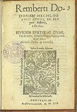 (Rembert Dodoens: De frugum historia, liber unus. Jan vander Loe, Antwerpen 1552)