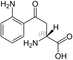 Kynurenin (griech. kýon Hund und ouron Urin) ist eine aromatische nicht-proteinogene Aminosäure.