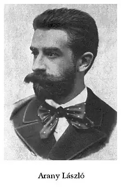 László Arany, ein Sohn von János Arany, veröffentlichte früh die poetische Erzählung Elfrida, wodurch er Mitglied der Kisfaludy-Gesellschaft wurde. In einem späteren, an Kaulbachs Gemälde anknüpfenden Gedicht Die Hunnenschlacht, schildert er das Ringen des Deutschtums und Magyarentums in Ungarn und fordert seine Landsleute leidenschaftlich zum Hass und Kampf gegen die deutsche Sprache und Kultur auf. Auch übersetzte er meisterhaft einige Dramen Shakespeares und Molières.