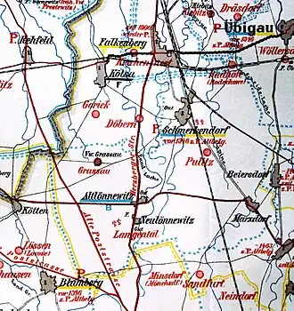 - ↑ Heinz Schwarick: Chronik der Stadt Falkenberg/Elster – Teil 1. Falkenberg/Elster 2007, S. 32.