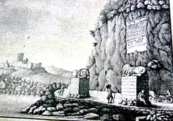 In jenem Zusammenhang ließ der (wohl auch für die Finanzierung verantwortliche) Hofkammer-Vizepräsident Reichsgraf Joseph August von Toerring seinem Landesherrn ein Denkmal errichten. Neun Meter über der Straße wurde durch den Hofsteinmetz Michael Mattheo, an der abgesprengten Felswand, eine zehn Meter hohe Steintafel mit lateinischer Widmungsinschrift an den Kurfürsten angebracht.