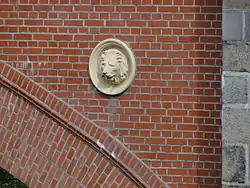 Der Bereich über den beiden Gleisen besteht aus einem Segmentbogen, der aus Ziegeln gemauert ist.[1] Zwei Löwenköpfe an jeder Seite zieren die Brücke, die 1846 erbaut wurde und an den Beginn des Eisenbahnzeitalters erinnert.[2] Die Flügelwände und die Sichtflächen der Widerlager sind aus Granit-Quadermauerwerk gefertigt. Die beiden Löwenköpfe auf beiden Seiten der Brücke sind Medaillonreliefs aus hellem Gusseisen in Sandsteinimitation. Beide Stirnwände sind durch einen Mauerwerksstreifen mit Schmuckrosetten gegliedert.[1]