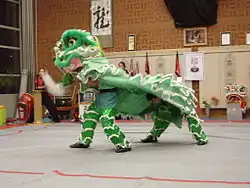- ↑ a b Alternativ im Standardchinesisch wushi (chinesisch 舞獅 / 舞狮, Pinyin wǔshī, Jyutping mou5si1)