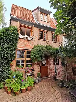 | Krusenhof | Engelsgrube 26 | 1540 als „Albert-Klever-Gang“ erwähnt, 1545 von Hans Kruse als Armengang mit Wohnungen gestiftet.[3] Der kleine Hof, 1597 mit zweigeschossigen Fachwerktraufenhäusern umgebaut, wurde 1994 bis 1996 grundlegend saniert. |