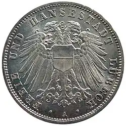 Die letzte Goldmünze, ein Dukat, wurde in Lübeck 1801 geprägt. Für genau 100 Jahre wurden dann weder in Lübeck noch in anderen Münzstätten für Lübeck Münzen geprägt. Zwischen 1901 und 1912 wurden 2-, 3- und 5-Mark-Silbermünzen sowie 10-Mark-Goldmünzen der Reichswährung geprägt. Die Rückseiten dieser Nominale durften die Mitgliedsstaaten des Deutschen Reichs mit dem Bildnis ihres Fürsten oder im Falle der Stadtstaaten mit ihrem Wappen gestalten (Art. 3, § 2 des Reichsmünzgesetzes vom 9. Juli 1873). Auf die eigentlichen Parameter der Münzpolitik hatten die Mitgliedsstaaten jedoch keinen Einfluss mehr.