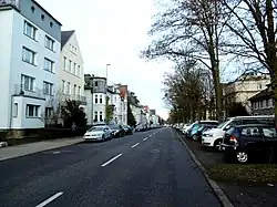 | Lütticher Straße im Abschnitt Klemensstraße bis Hohenstaufenallee (Blick stadtwärts) | |