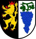Die Blasonierung des Wappens lautet: In von Schwarz und Silber gespaltenem Schild vorn ein rot bewehrter und rot gekrönter goldener Löwe, hinten eine blaue Traube an grünem Rebast mit zwei Blättern. Das Wappen geht zurück auf ein Gerichtssiegel aus dem Jahr 1738. Der Löwe entstammt dem Wappen der Kurpfalz. Die Traube symbolisiert den Weinbau, der seit dem frühen Mittelalter betrieben wird.