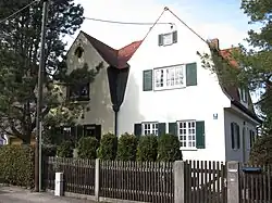Die zwei erdgeschossigen Zwillingshäuser mit tief herabgezogenen Mansarddächern wurden von den Gebrüdern Ott erbaut. Sie unterscheiden sich in wenigen Details, wie dem Fenstererker der Nr. 18.