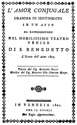 - ↑ Jürgen Maehder: L’amor coniugale. In: Pipers Enzyklopädie des Musiktheaters. Band 4: Werke. Massine – Piccinni. Piper, München/Zürich 1991, ISBN 3-492-02414-9, S. 17–18.