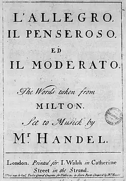 - Partitur von L’Allegro, il Penseroso, ed il Moderato (Händel-Werkausgabe, hrsg. v. Friedrich Chrysander. Leipzig 1859)