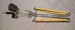 Als Vorschaltgerät wird teilweise ein Kondensatornetzteil verwendet. Solche LED-Lampen sind (wenn überhaupt) nur mit Phasenabschnittdimmern dimmbar. Minderwertige Varianten verzichten auf einen ausreichend dimensionierten Elektrolytkondensator zur Spannungsglättung und flimmern daher mit 100 Hz, der doppelten Netzfrequenz. Bessere Lampen enthalten eine aufwendigere Elektronik und sind oft auch dimmbar (siehe auch unter LED-Leuchtmittel).[17]