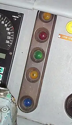 Führerstandsanzeige und Bedienschalter mit den Positionen Aus, Start und Betrieb des Zugbeeinflussungssystems LS 90