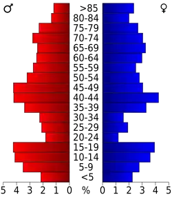- ↑ Auszug aus factfinder.census.gov (Seite nicht mehr abrufbar, festgestellt im November 2022. Suche in Webarchiven) Info: Der Link wurde automatisch als defekt markiert. Bitte prüfe den Link gemäß Anleitung und entferne dann diesen Hinweis. Abgerufen am 21. Februar 2011