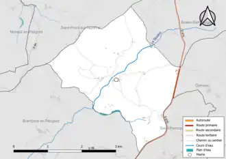 Das Gemeindegebiet wird mittig vom Boulou durchflossen, der nach Südwesten entwässert. Er nimmt an der Südwestgrenze einen von Pradarier herunterziehenden linken Seitenarm auf, der zu zwei Weihern aufgestaut ist und die Gemeindegrenze zu Brantôme en Périgord (vormals Saint-Crépin-de-Richemont) markiert. Linksseitig empfängt der Boulou ferner zwei Trockentäler, das nördliche mündet kurz unterhalb der jetzt verfallenen Mühle Moulin de Bernillou und das weiter südwärts gelegene, nur sehr kurze, nördlich der Domaine de Montmoreau. Auf der rechten Talseite verläuft ebenfalls ein Trockental; auch es markiert den Grenzverlauf zu Brantôme en Périgord (vormals Saint-Crépin de Richemont).