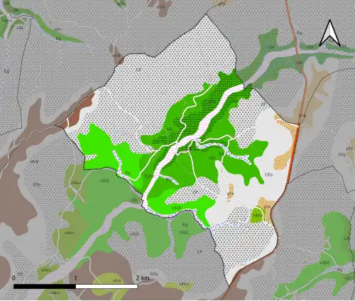 Die Trockentäler werden von eiszeitlichem Kalkhangschutt verfüllt (Formation GP). Im Bouloutal selbst haben sich sehr rezente alluviale Sedimente des Holozäns abgelagert (Formation K).
