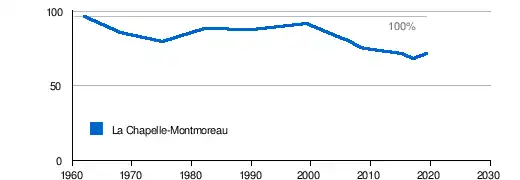 Die Bevölkerung in der Gemeinde La Chapelle-Montmoreau ist rückläufig, sie hatte sich aber ab 1975 bis 1999 zwischenzeitlich wieder erholt.