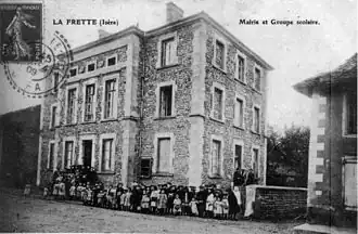 ![]() Rathaus (mairie) und Schule auf einer Postkarte aus dem Jahr 1909 | ||