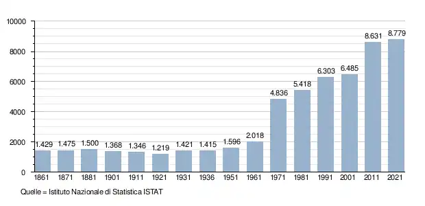 - ↑ Bilancio demografico e popolazione residente per sesso al 31 dicembre 2024. ISTAT. (Bevölkerungsstatistiken des Istituto Nazionale di Statistica, Stand 31. Dezember 2024).